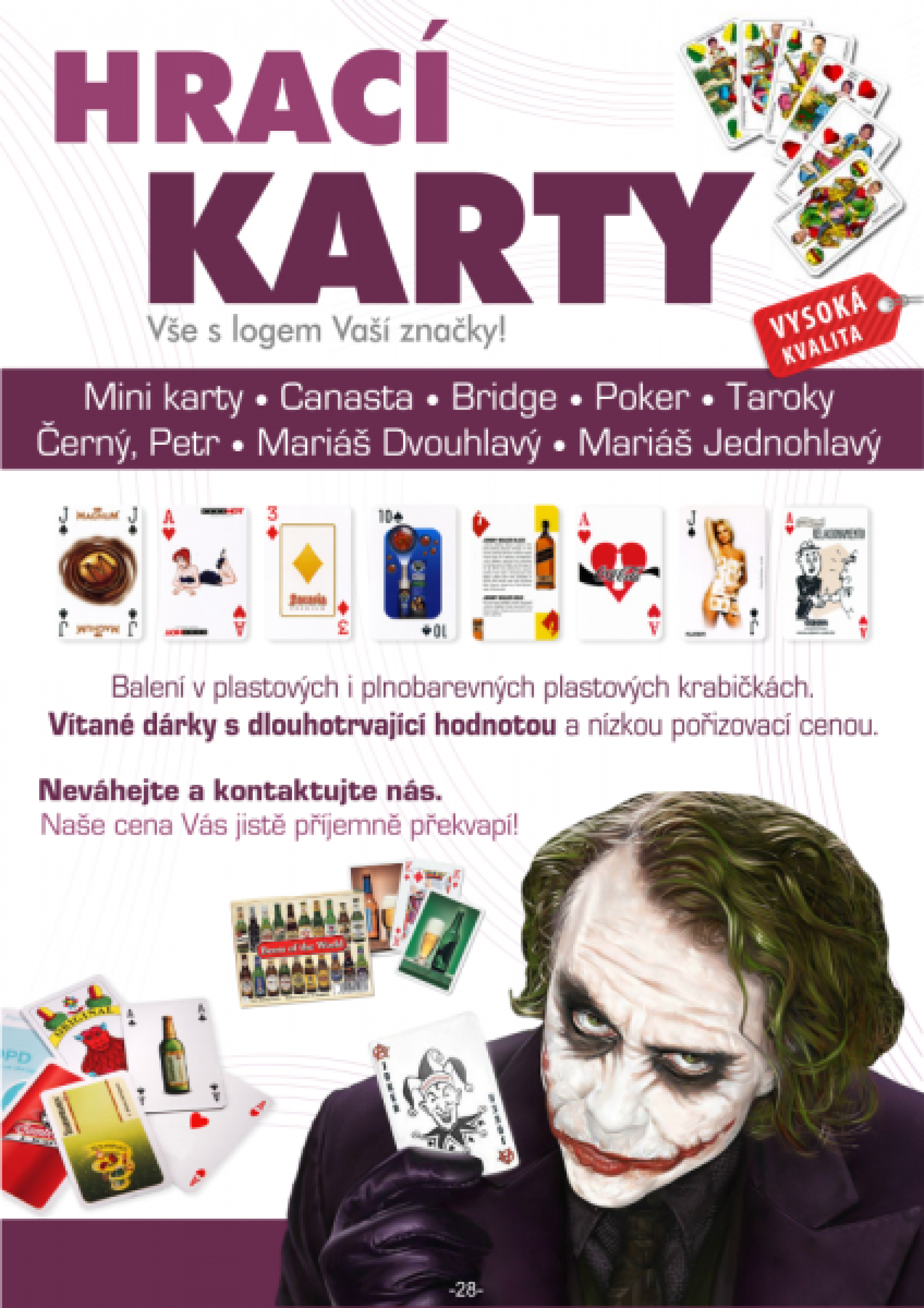 Reklamní hrací karty Návrh ceny Váš návrh cenyMáte zájem o tento výrobek, ale nesedí Vám naše cena? Nebo planujete nakoupit více kusů? Navrhněte nám svojí cenu! Není skladem Popis výrobku Dotaz na výrobek Další výrobky z kategorie (1192)